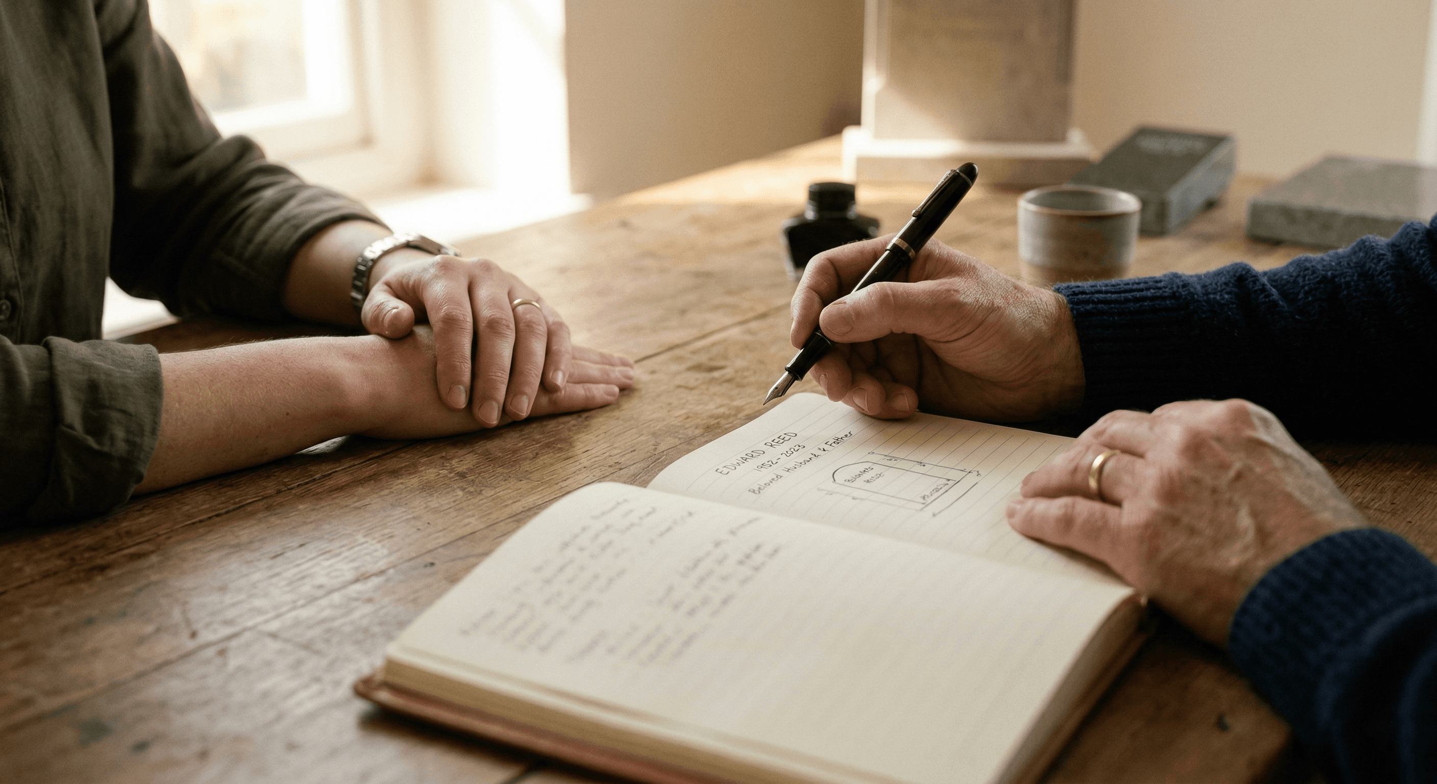 Nothing is off-the-shelf. Every memorial is designed from scratch, around one person's life and what you tell us about them.